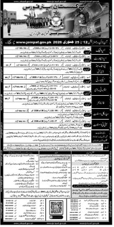 (Age relaxation as per Pakistan Air Force rules and trade requirements)