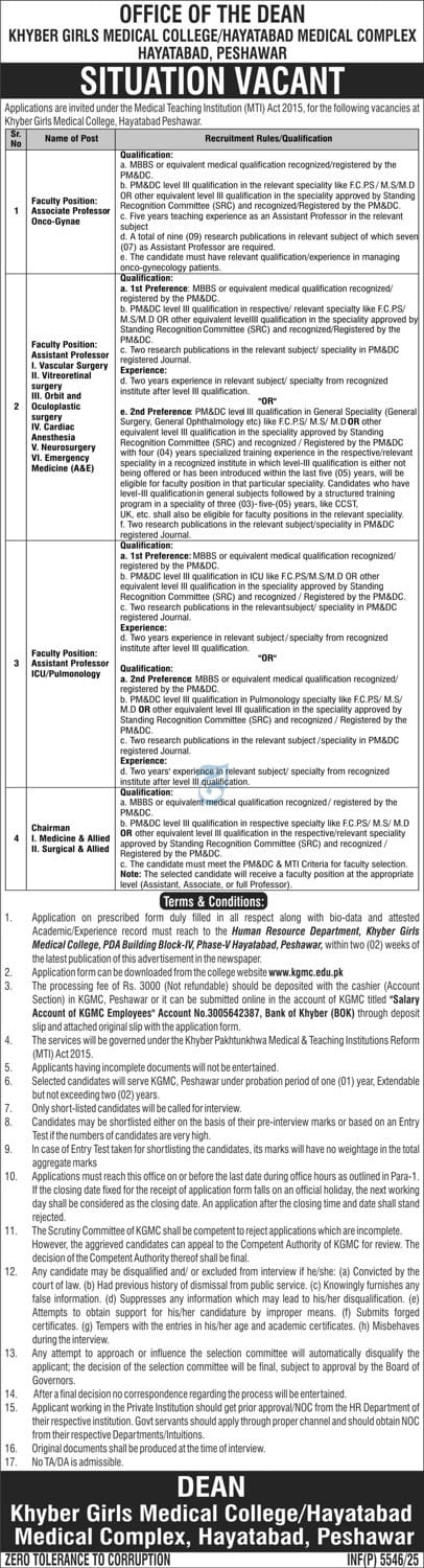 – Human Resource Department, KGMC, PDA Building Block-IV, Phase-V, Hayatabad, Peshawar